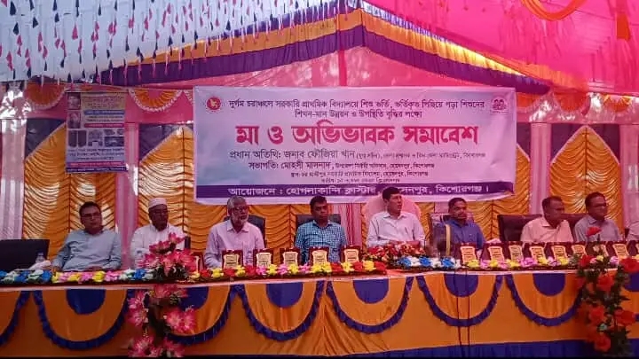 কিশোরগঞ্জের হোসেনপুরে সরকারী প্রাথমিক বিদ্যালয় সমূহের সহশ্রাধিক মায়েদের নিয়ে মা সমাবেশ অনুষ্ঠিত হয়। সোমবার (১০ নভেম্বর) উপজেলার হোগলাকান্দি ক্লাস্টারের দুর্গম প্রত্যন্ত চরাঞ্চলে চরহাজীপুর সরকারী প্রাথমিক বিদ্যালয়ে প্রাথমিক শিক্ষার মান উন্নয়ন ও মায়েদের পরিচর্যার লক্ষ্যে এ সমাবেশ অনুষ্ঠিত হয়।