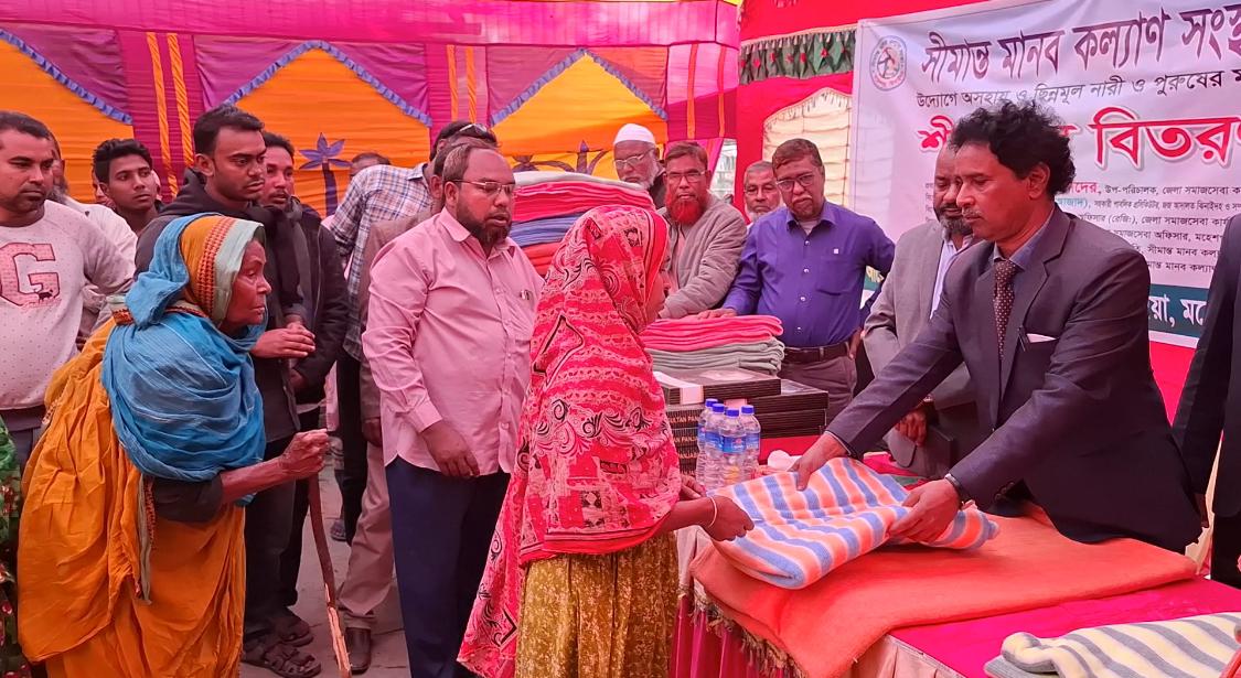 ঝিনাইদহের মহেশপুর উপজেলার সীমান্তবর্তী এলাকার অসহায়-দুস্থ দুই শতাধিক মানুষের মাঝে শীতবস্ত্র বিতরণ করা হয়েছে। স্থানীয় স্বেচ্ছাসেবী সংগঠন ‘সীমান্ত মানবকল্যাণ সংস্থা’ এর উদ্যোগে বুধবার (২৬ নভেম্বর) দুপুরে উপজেলার পেপুলবাড়িয়া গ্রামে এ বিতরণ কার্যক্রম অনুষ্ঠিত হয়। সংগঠনটির সভাপতি সাব্বির আহমেদের সভাপতিত্বে অনুষ্ঠানে প্রধান অতিথি হিসেবে উপস্থিত ছিলেন জেলা সমাজসেবা কার্যালয়ের উপপরিচালক মো. আব্দুল কাদের।