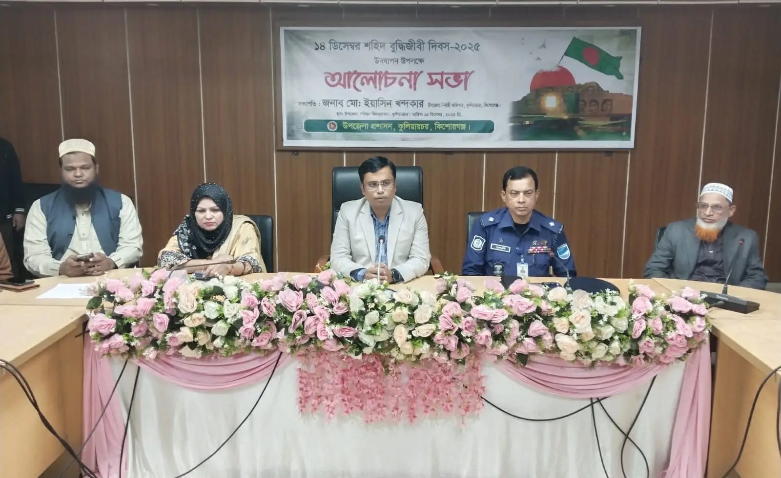 কিশোরগঞ্জের কুলিয়ারচরে শহিদ বুদ্ধিজীবী দিবস-২০২৫ উদযাপিত হয়েছে। রোববার (১৪ ডিসেম্বর) দুপুরে উপজেলা পরিষদ মিলনায়তনে উপজেলা প্রশাসন কর্তৃক আয়োজিত শহিদ বুদ্ধিজীবী দিবস উদযাপন উপলক্ষে এক আলোচনা সভা অনুষ্ঠিত হয়।