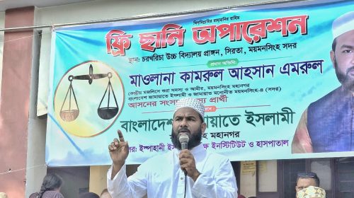 আরিফ রববানী, ময়মনসিংহ প্রতিনিধি: বাংলাদেশ জামায়াতে ইসলামী মনোনীত ময়মনসিংহ -৪ (সদর) আসনের সংসদ সদস্য প্রার্থী মাওলানা কামরুল আহসান এমরুল এর উদ্যোগে চোখের ফ্রি ছানি অপারেশন ক্যাম্পের মাধ্যমে সমাজের গরীব অসহায়…