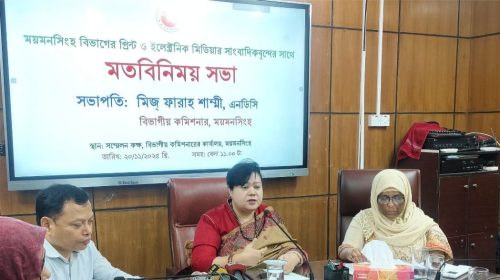 আরিফ রববানী, ময়মনসিংহ সংবাদদাতা: ময়মনসিংহের নবাগত বিভাগীয় কমিশনার ফারাহ শাম্মী, এনডিসি বলেন, ময়মনসিংহ বিভাগকে একটি সুগঠিত, উন্নত ও সম্ভাবনাময় পর্যায়ে নিয়ে যাওয়ার জন্য আমরা আন্তরিকভাবে কাজ করে যাব ইনশাআল্লাহ। বুধবার…