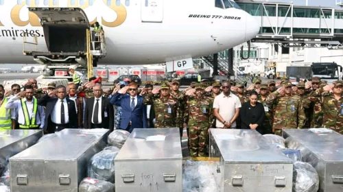 সুদানে জাতিসংঘ শান্তিরক্ষা মিশনে সন্ত্রাসী হামলায় শাহাদাত বরণকারী বাংলাদেশ সেনাবাহিনীর শান্তিরক্ষীদের মৃতদেহ দেশে প্রত্যাবর্তন