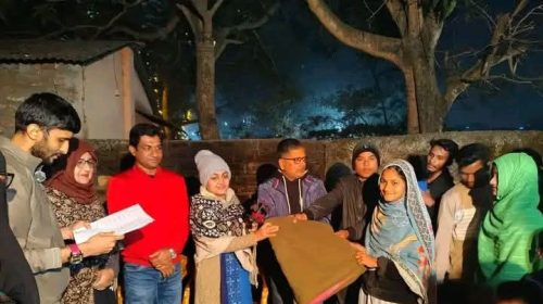 পাকুন্দিয়ার এগারসিন্দুরে শীতার্তদের মাঝে শীতবস্ত্র বিতরণ