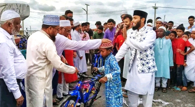 কিশোরগঞ্জের মিঠামইনে নিয়মিত পাঁচ ওয়াক্ত সালাত জামায়াতে আদায় করায় ২৬ শিক্ষার্থীকে বাইসাইকেল উপহার দেওয়া হয়েছে।