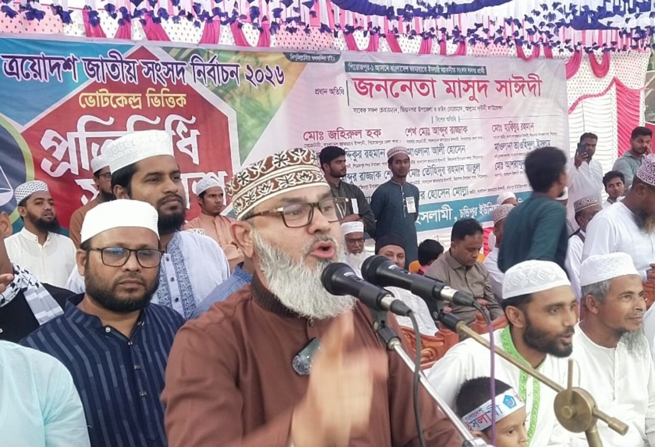৩ নভেম্বর (সেমাবার) বিকালে উপজেলার কলারণ চন্ডিপুর আদর্শ মাধ্যমিক বিদ্যালয় মাঠে ত্রয়োদশ জাতীয় সংসদ নির্বাচনকে কেন্দ্র করে ভোটকেন্দ্র ভিত্তিক প্রতিনিধি সমাবশে চন্ডিপুর ইউনিয়ন জামায়াতের সভাপতি মাওলানা মোঃ ছারোয়ার হোসেন মোল্লার সভাপতিত্বে প্রধান অথিতির বক্তব্যে ইন্দুরকানি উপজেলার সাবেক চেয়ারম্যান, জামায়াত মনোনীত পিরোজপুর-১ আসনের সংসদ সদস্য প্রার্থী মাসুদ সাঈদী একথা বলেন।