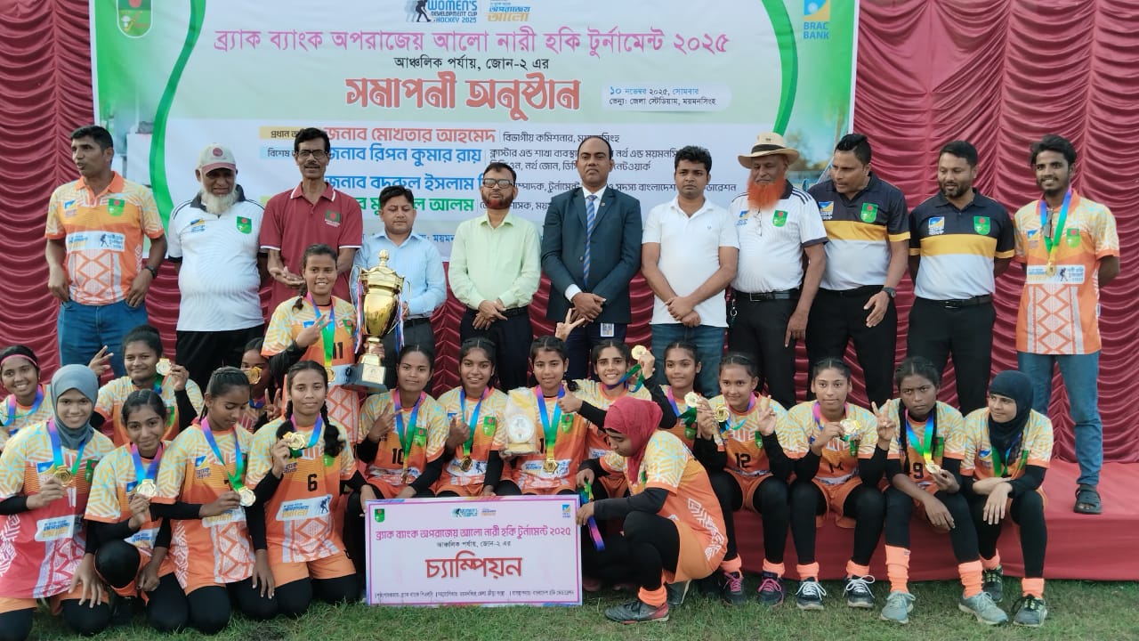 ব্র্যাক ব্যাংক অপরাজেয় আলো নারী হকি টুর্নামেন্টের ময়মনসিংহ আঞ্চলিক পর্বের (জোন-২) ফাইনাল খেলায় কিশোরগঞ্জ জেলা দল নেত্রকোনা জেলা দলকে পরাজিত করে চ্যাম্পিয়ন হওয়ার গৌরব অর্জন করেছে।