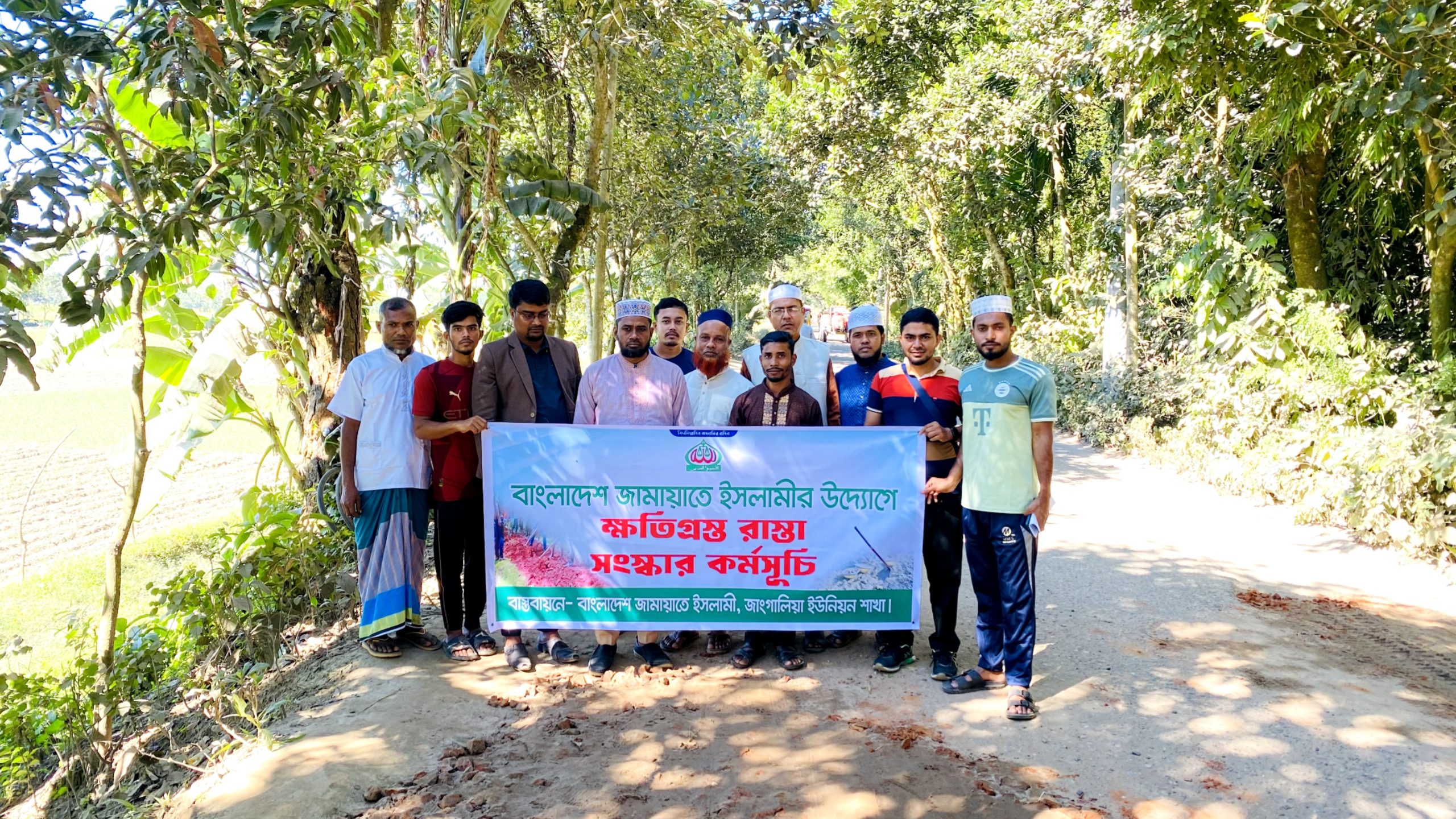 স্থানীয়রা জানান, পাকুন্দিয়া–হোসেনপুর সড়কের তারাকান্দি বাজার থেকে জাঙ্গালিয়া বাজার পর্যন্ত রাস্তাটি দীর্ঘদিন সংস্কারের অভাবে সম্পূর্ণ ব্যবহারের অনুপযোগী হয়ে পড়েছিল। বিশেষ করে বর্ষাকালে রাস্তাটিতে বড় বড় গর্ত ও কাদা জমার কারণে শিক্ষার্থী, অসুস্থ রোগী এবং সাধারণ মানুষের চলাচলে চরম ভোগান্তি পোহাতে হচ্ছিল। স্থানীয় জনপ্রতিনিধিদের কাছে বার বার জানিয়েও কোনো সমাধান মেলেনি। এমন পরিস্থিতিতে স্থানীয় জনসাধারণের দুর্ভোগ লাঘবে এগিয়ে আসে বাংলাদেশ জামায়াতে ইসলামী জাঙ্গালিয়া ইউনিয়ন শাখা। জামায়াতের স্থানীয় নেতাকর্মী ও সমর্থকরা এলাকার জনসাধারণকে সঙ্গে নিয়ে স্বেচ্ছাশ্রমের ভিত্তিতে রাস্তাটি সংস্কারের উদ্যোগ নেন। সকলের সম্মিলিত প্রচেষ্টায় এবং জামায়াতের পক্ষ থেকে প্রয়োজনীয় অর্থ ও উপকরণ দিয়ে এই সংস্কার কাজ সম্পন্ন হয়। রাস্তা সংস্কার হওয়ায় স্থানীয়দের মধ্যে স্বস্তি ফিরে এসেছে। তারা জামায়াতে ইসলামীর এই জনকল্যাণমূলক উদ্যোগের প্রশংসা করেছেন।