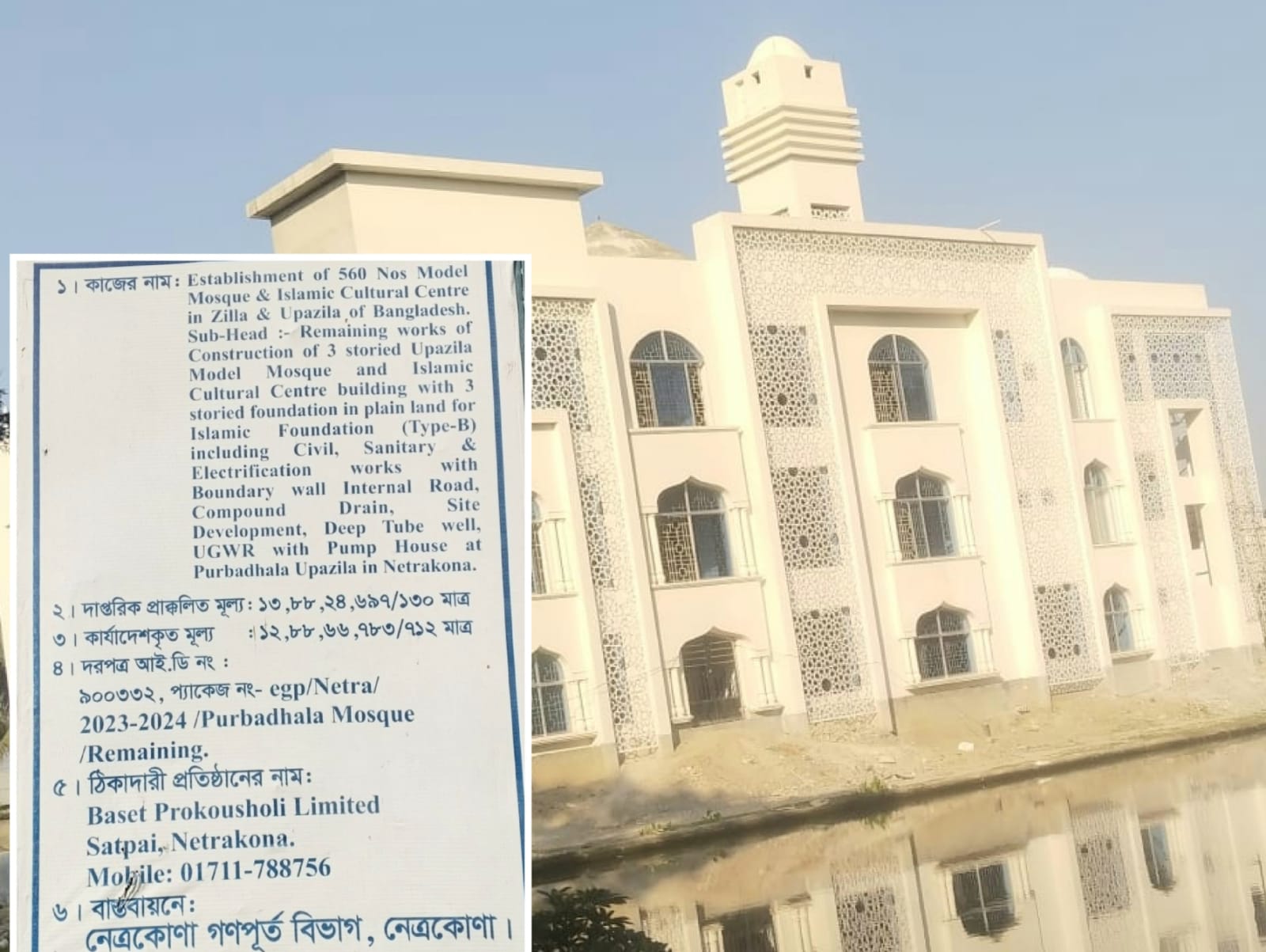 দেশের সকল জেলা–উপজেলায় ৫৬০টি মডেল মসজিদ ও ইসলামিক সাংস্কৃতিক কেন্দ্র স্থাপন প্রকল্পের আওতায় নেত্রকোণার পূর্বধলা উপজেলায় নির্মিতব্য মডেল মসজিদ নির্মাণে ঠিকাদার ও প্রকৌশলীর বিরুদ্ধে ভয়াবহ অনিয়ম–দুর্নীতির অভিযোগ উঠেছে। কোটি কোটি টাকা ব্যয়ে নির্মিত এ ধর্মীয় স্থাপনায় স্বল্প দিনেই দেয়ালে ফাটল, ছাদের আস্তরণ খসে পড়া, বাউন্ডারি বেঁকে যাওয়া এবং অভ্যন্তরীণ কাঠামো ঝুঁকিপূর্ণ হয়ে পড়ায় এলাকাবাসীর মধ্যে চরম ক্ষোভ ও আতঙ্ক তৈরি হয়েছে। যে মসজিদটি ইসলামিক ফাউন্ডেশনের মান অনুযায়ী আধুনিক, টেকসই এবং নিরাপদ একটি উপাসনাস্থল হওয়ার কথা ছিল—নিম্নমানের নির্মাণকাজের কারণে সেটিই এখন ধ্বংসসীমায় পৌঁছে গেছে।
