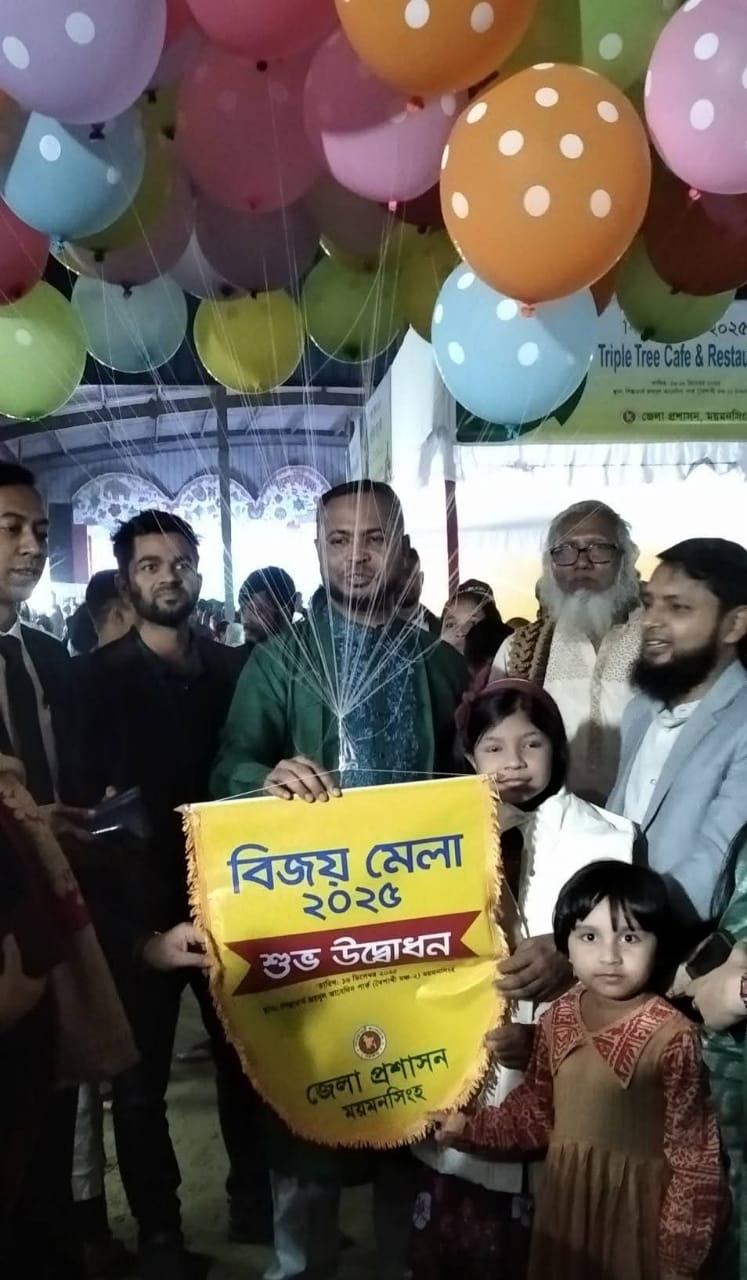 মনোজ্ঞ সাংস্কৃতিক অনুষ্ঠান পরিবেশনা ও বিজয়ীদের মাঝে পুরস্কার বিতরণের মাধ্যমে ময়মনসিংহে মহান বিজয় দিবস ২০২৫ উদযাপনের উৎসব অনুষ্ঠান শেষ হলো। এ অনুষ্ঠান মঙ্গলবার নগরীর জয়নুল আবেদীন পার্কের বৈশাখী মঞ্চে সন্ধ্যার পর অনুষ্ঠিত হয়।