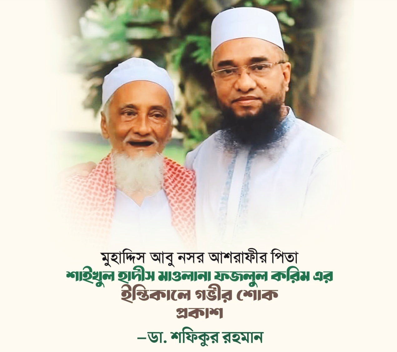 শাইখুল হাদীস মাওলানা ফজলুল করিম এঁর ইন্তিকালে জামাত আমীরের শোক প্রকাশ