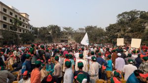 বাংলাদেশ জামায়াতে ইসলামীর আমীর ডা. শফিকুর রহমান বলেন, আমি আজ এখানে জামায়াতের আমীর হিসেবে দাঁড়াইনি। আমি দাঁড়িয়েছি রিকশা-ভ্যান-ঠেলা চালক, গার্মেন্টস কর্মী, দোকান-কর্মচারী ও সাধারণ শ্রমিক-জনতার অধিকার প্রতিষ্ঠা করতে। যারা বৈষম্যের শিকার আমি তাদের হয়ে জনগণের সামনে দাঁড়িয়েছি। আমি চব্বিশের বিপ্লবীদের হয়ে দাঁড়িয়েছি। যেই বিপ্লবীদের জীবন আজ হুমকির মুখে। এক হাদিকে হত্যা করে ১৮ কোটি জনগণের হৃদয়ে হাদির জন্ম হয়েছে। কোটি কোটি মানুষ হাদি হতে প্রস্তুত। হাদির রক্ত বৃথা যেতে দেওয়া হবে না উল্লেখ করে তিনি বলেন, এদেশে আর কোনো আধিপত্যবাদী শক্তি মাথাচাড়া দিয়ে উঠতে পারবে না। আধিপত্যবাদ-ফ্যাসিবাদ মুক্ত নতুন বাংলাদেশ গড়ে তোলা হবে। আমরা বাংলাদেশে ফ্যাসিবাদের আর কোনো ছায়াও দেখতে চাই না। ফ্যাসিবাদ নতুন জামা পড়ে কেউ আসলে ৫ আগস্টের মতোই তাদরেও একই পরিণতি ভোগ করতে হবে। তিনি বলেন, যারা মানুষের ভোটের অধিকার কেড়ে নিয়েছিল তারা ভোট ডাকাত। আমরা আর কোনো ভোট ডাকাত দেখতে চাই না। বিগত ৩টি নির্বাচন নয় এমনও মানুষ আছে যারা জীবনেও ভোট দিতে পারেনি। কারণ তাদের ভোট ডাকাতি করা হয়েছিল।