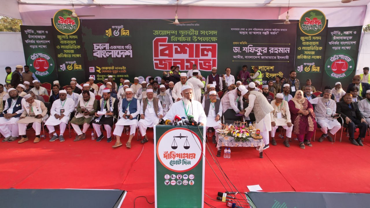 আমীরে জামায়াত বলেন, আগে একটা স্লোগান ছিল এই ধান্দাবাজদের আমার ভোট আমি দিব তোমারটাও আমি দেব। এখন এদিন শেষ। ৩৬ জুলাইয়ে কবর রচনা করে দিয়েছে। ছত্রিশ জুলাইয়ে এটা পায়ের নিচে আমরা ফেলে দিয়েছি। এখনকার জবাব স্পষ্ট, সাফ আমারটা আমি দিব তোমারটা তুমি দাও। আমার ভোটে হাত দিলে হাত ভেঙে গুড়িয়ে দেওয়া হবে। এ আমার অধিকার নয় এ আমার অধিকারের সাথে আমার দায়িত্ব বটে। আমার দেশ আমি গড়বো। আমার দল আমি পছন্দ করবো তুমি কে? পারবেন? শিউর পারবেন? নাকি কোন চোখ রাঙানিকে ভয় করবেন? অবশ্যই না।