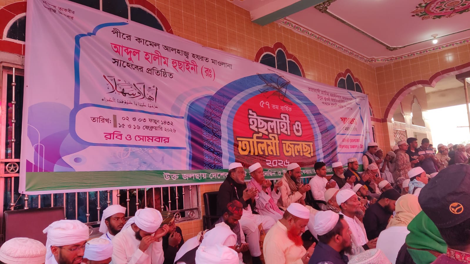 ১৭ ফেব্রুয়ারি সকালে ০৯:২০ ঘটিকায় কিশোরগঞ্জের পাকুন্দিয়া উপজেলার তারাকান্দিতে অবস্থিত ঐতিহ্যবাহী দ্বীনি শিক্ষাপ্রতিষ্ঠান জামি’আ হুসাইনীয়াহ আছআদুল উলুম (কওমী ইউনিভার্সিটি) প্রাঙ্গণে দুই দিনব্যাপী বার্ষিক ইসলাহী ও তা’লীমী জলছা সম্পন্ন হয়েছে। আখেরী মোনাজাতের মধ্য দিয়ে এই সমাবেশের সমাপ্তি ঘটে।