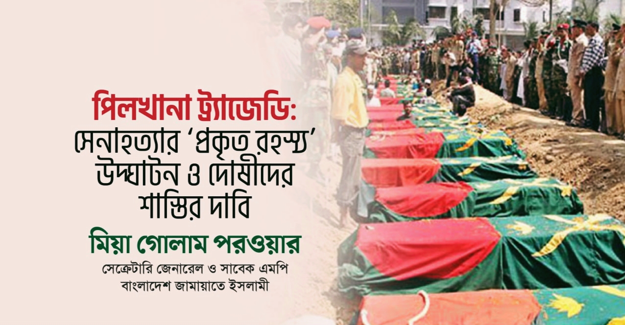 ২০০৯ সালে পিলখানায় সেনাহত্যার ‘প্রকৃত রহস্য’ উদ্ঘাটন করে দোষীদের শাস্তি নিশ্চিত করার দাবি জানিয়ে বাংলাদেশ জামায়াতে ইসলামীর সেক্রেটারি জেনারেল সাবেক এমপি মিয়া গোলাম পরওয়ার ২৪ ফেব্রুয়ারি এক বিবৃতি প্রদান করেছেন।