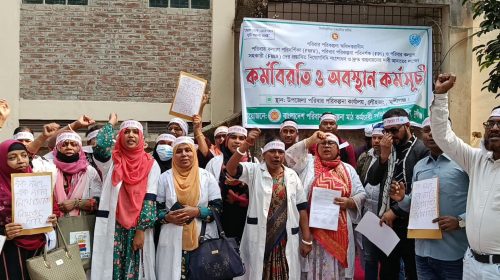 মুন্সিগঞ্জের লৌহজংয়ে পরিবার কল্যাণ কর্মীদের অবস্থান কর্মসূচি