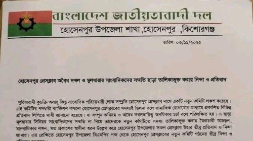 হোসেনপুর প্রেসক্লাবের নতুন কমিটি গঠন: উপজেলা বিএনপির তীব্র নিন্দা ও…