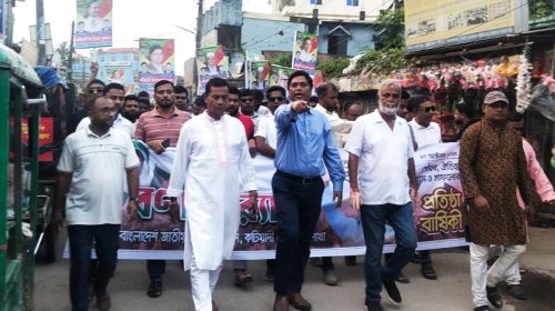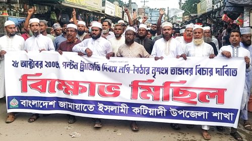 নির্বিচারে মানুষ হত্যাকারীদের বিচারের দাবীতে পাকুন্দিয়া জামায়াতে ইসলামীর বিক্ষোভ মিছিল