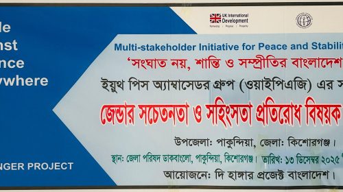 মোঃ সুমন মিয়া, পাকুন্দিয়া সংবাদদাতা: ‘সংঘাত নয়, শান্তি ও সম্প্রীতির বাংলাদেশ গড়ি' ইয়ুথ পিস অ্যাম্বাসেডর গ্রুপ (ওয়াইপিএজি) এর সদস্যদের জেন্ডার সচেতনতা ও সহিংসতা প্রতিরোধ বিষয়ক প্রশিক্ষণ সম্পন্ন হয়েছে। ১৩ ডিসেম্বর…