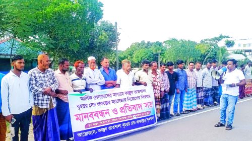 অষ্টগ্রামে ৭৪টি সেচ প্রকল্পে ম্যানেজার নিয়োগের প্রতিবাদে মানববন্ধন