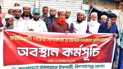 কিশোরগঞ্জে নাশকতা ও অপতৎপরতা প্রতিরোধে জেলা জামায়াতের অবস্থান কর্মসূচি